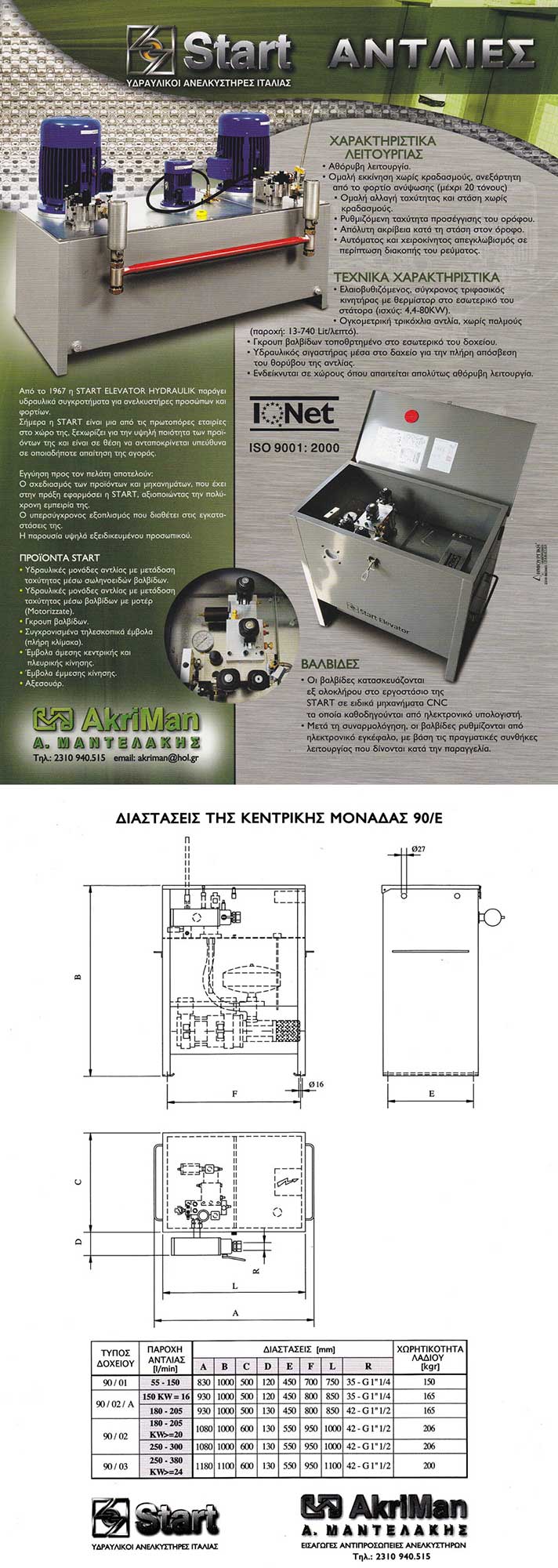 Η Akriman διαθέτει με μεγάλη επιτυχία στην Ελληνική αγορά από το 1993 τις αντλίες της Ιταλικής εταιρίας Start Elevator srl οι οποίες ενδείκνυνται σε χώρους όπου απαιτείται απολύτως αθόρυβη λειτουργία και χαρακτηρίζονται για :